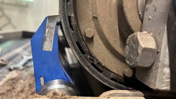 Oplossing: Onze kloprollen kloppen het vuil en de klei tussen de profielen vandaan, zodat de band schoon blijft zonder het profiel te beschadigen.